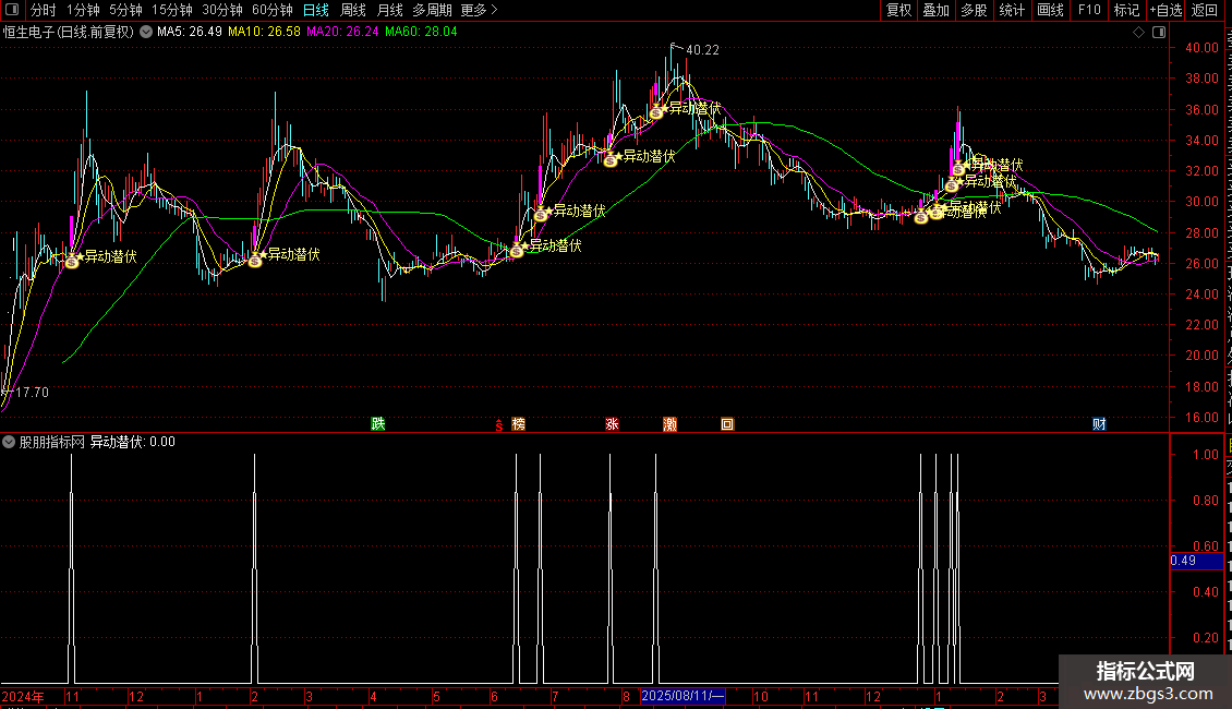 异动潜伏通达信核心指标依托专业量价配合逻辑搭配均线运行规律研发编制,精准结合个股周期内高低价波动走势以及股价关键突破形态综合运算,能够精准捕捉个股拉升启动前的临界节点,提前发出可靠潜伏上车信号,精准把握主力异动拉升前奏,规避盲目入场风险,告别追高被套难题,轻松实现低位潜伏、高位顺势获利。