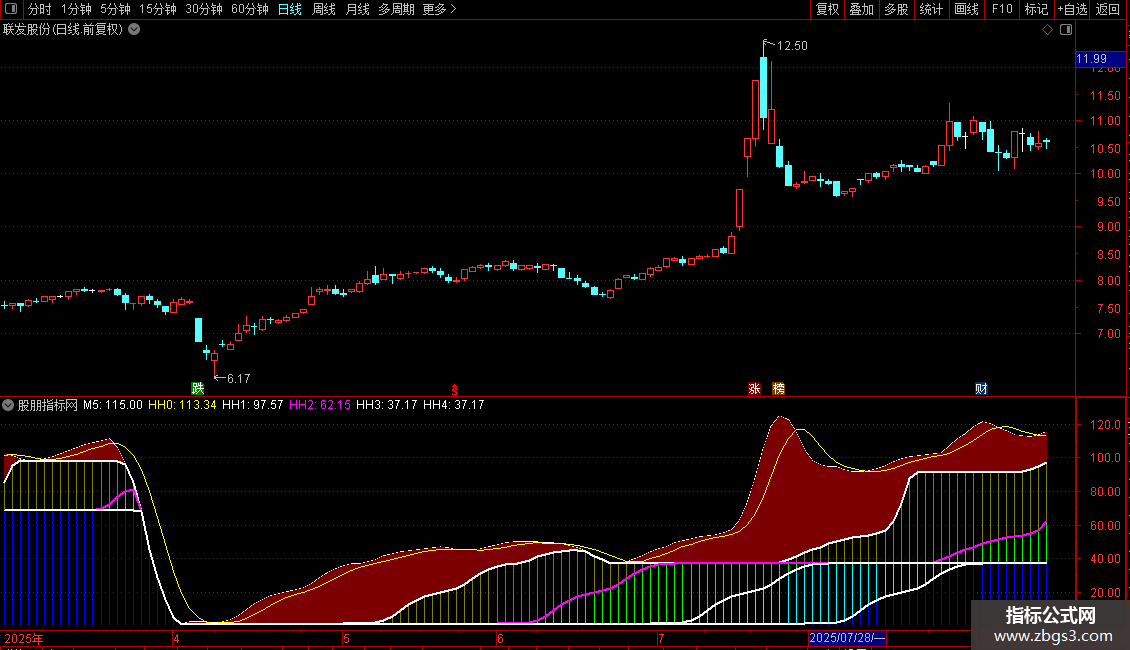 该公式为多层级价格动量指标,用于识别趋势强度与支撑/压力区域。