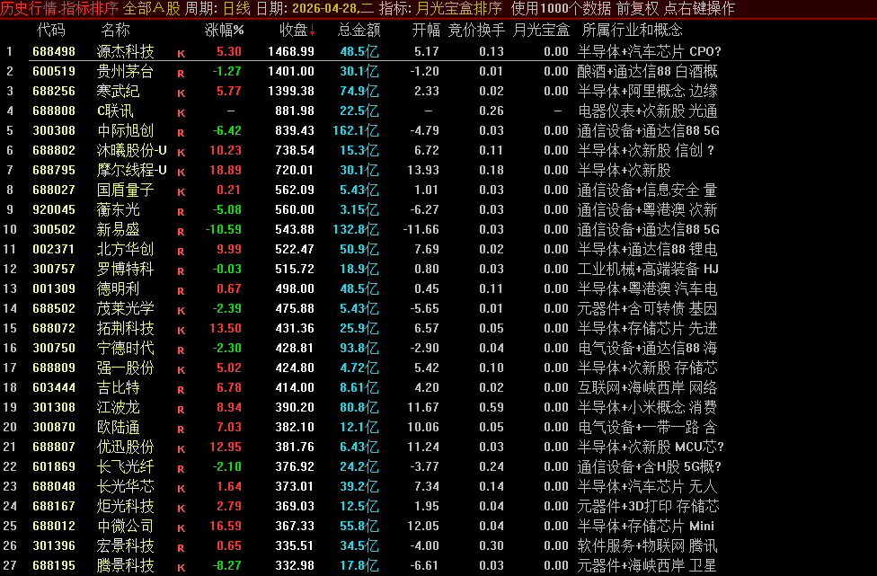 1. 早盘9:25-9:30,调用公式进行全市场排序;