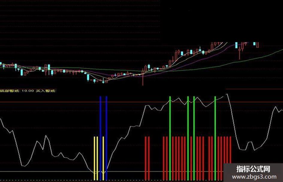 买入警戒: IF(股价趋势<=10,50,0),stick,linethick3,coloryellow;