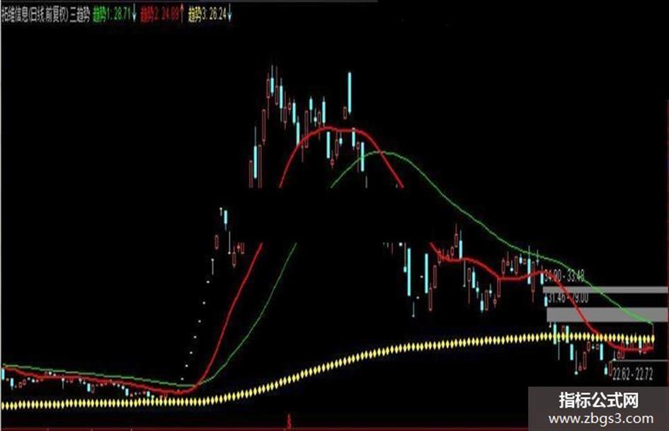 说明:难道炒股真的这么简单吗?只有经过长期实践和在牛、熊市中经得起时间考验的指标才是好指标。通过三条线的走势,可以成功率极高的抓到启动初期大牛股。公式简单实用,配合成交量一起使用会起到事半功倍的效果。慢慢揣摩,必有收获……。