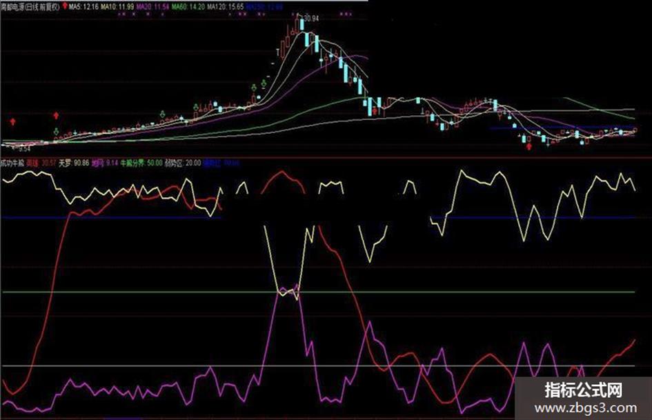 3、[英雄]线值上穿20,表示股票开始走强,可以择机介入。
