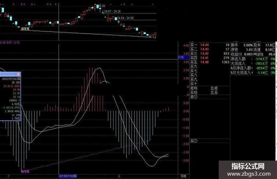 DRAWTEXT(CROSS(EXT!=DRAWNULL,0.5),MACD,'底背离'),COLORMAGENTA;
