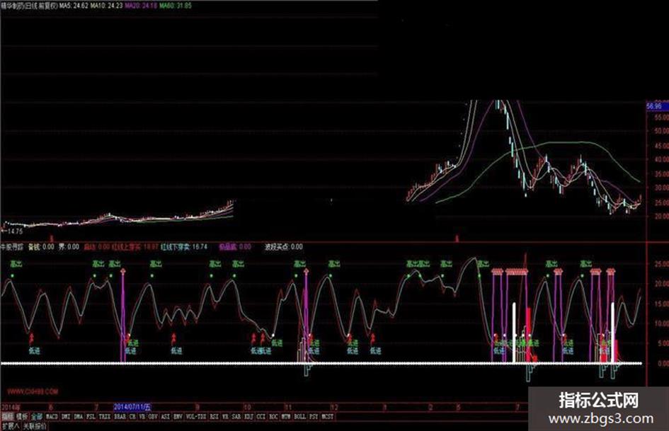 极品底:IF((MA(C,5)-C)/C>0.04 AND (MA(C,10)-MA(C,5))/MA(C,5)>0.04,23,0),LINETHICK2,COLORFF00FF;