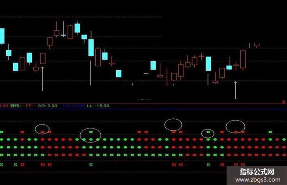 持币:IF(EE<=REF(EE,1),-3,DRAWNULL),CROSSDOT,LINETHICK3,COLORGREEN;