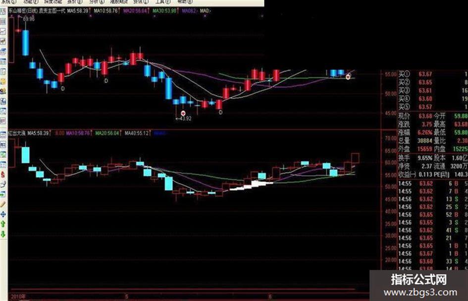 STICKLINE(MA5>=MA10 AND MA5<MA20,MA10,MA5,4,0),COLORWHITE;