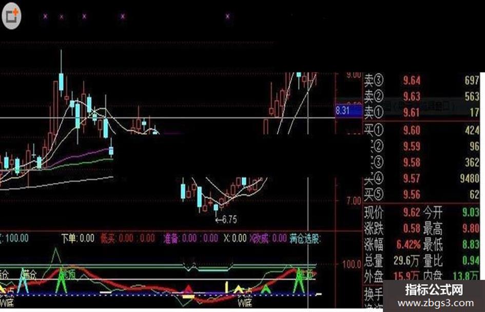 准备:(IF(((动向趋势线 > 88) AND (神偷线 < 5.8)),68,0)),LINETHICK1,COLORFF00FF;