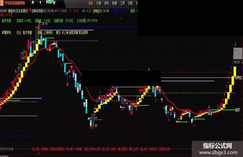 在四种涨停板的基础上,加了九转序列和支撑压力线等
