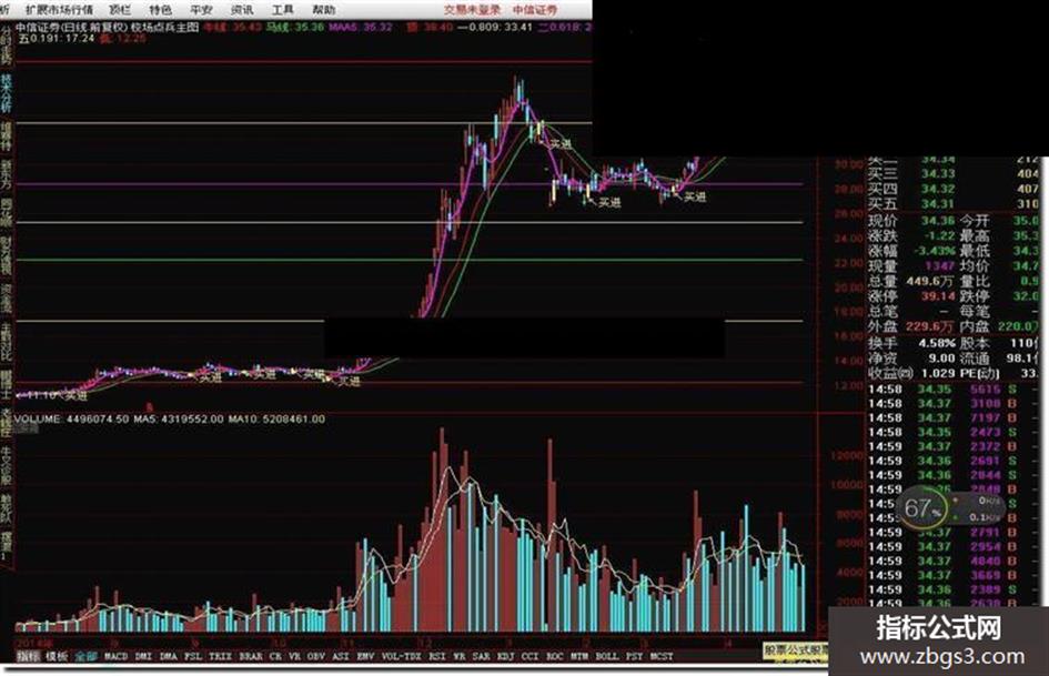 DRAWTEXT(FILTER(买=1,5),LOW-0.05,'↖买进'),COLORYELLOW;