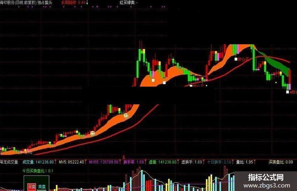 多空趋势彩带:DRAWBAND(SMA(C,6.5,1),RGB(255,97,0),SMA(C,13.5,1),RGB(0,128,0));