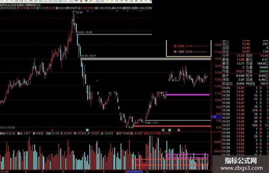 附件中有一主一副,主图有二个预期目标价格,副图是量能,与主图相关的是二个换手区,分时是绿色箭头表示的区域和天数,即这二个区间的换手存在,预期目标价在主图,只是经验预估,不必当真。