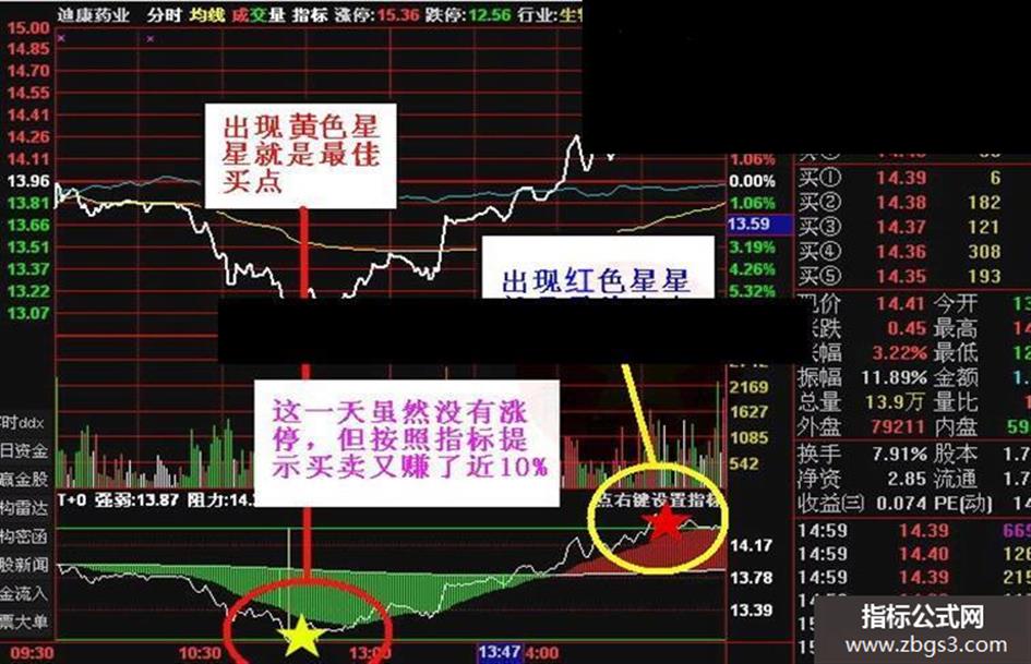 属于傻瓜式操作,盘中出现黄星即为买入信号,盘中出现红星即为卖出信号(注意:第二款有未来函数,就是说盘中买卖点会有位移的情况出现,建议者可以使用第一款就可以,不过本人觉得目前的行情一样可以做参考的)