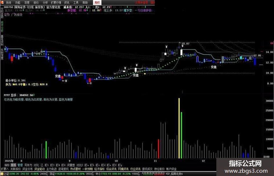 DRAWTEXT_FIX(ISLASTBAR,0,0,0,'红色柱为吸货量,绿色为出货量,黄色为天量,蓝色为地量'),COLOR9F9F5F;