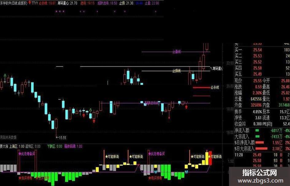 DRAWTEXT(CURRBARSCOUNT=INTPART((WH2+21)*0.618),进场,'进场线'),COLORRED;