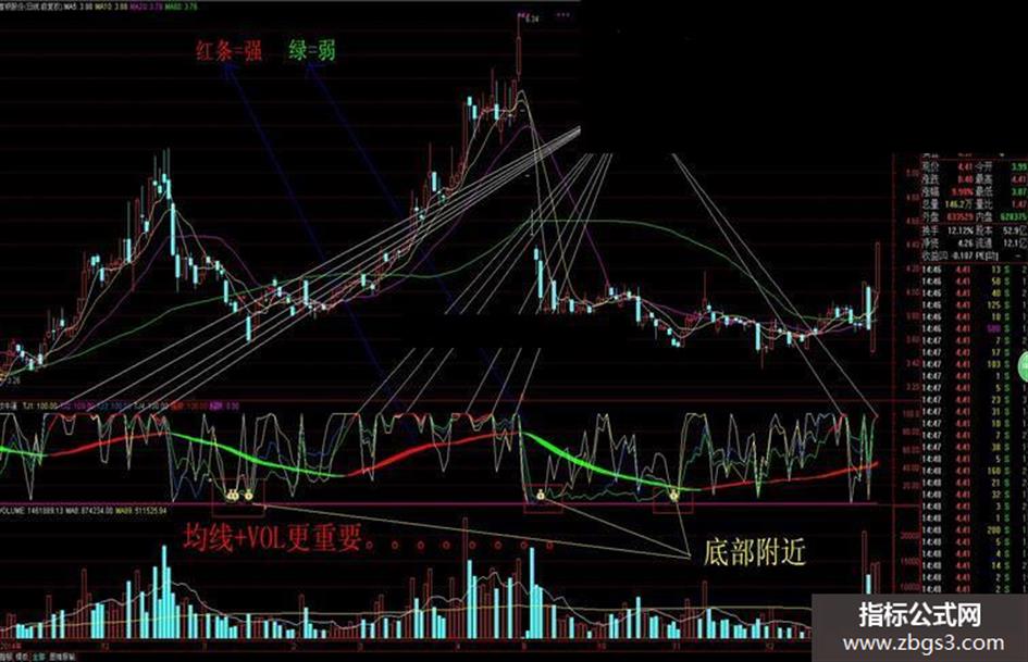 强势:IF(TJ3>86 AND TJ4>76,TJ4,DRAWNULL),COLORRED,LINETHICK2;