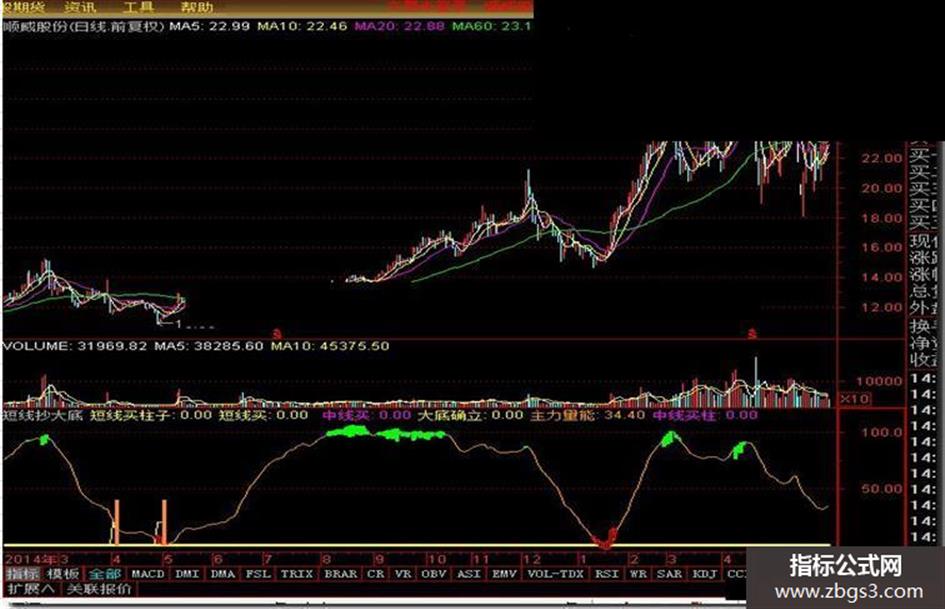 短线买1:=IF(绝佳买点>500 AND 绝佳买点>2500,1,0),COLORYELLOW,LINETHICK1;