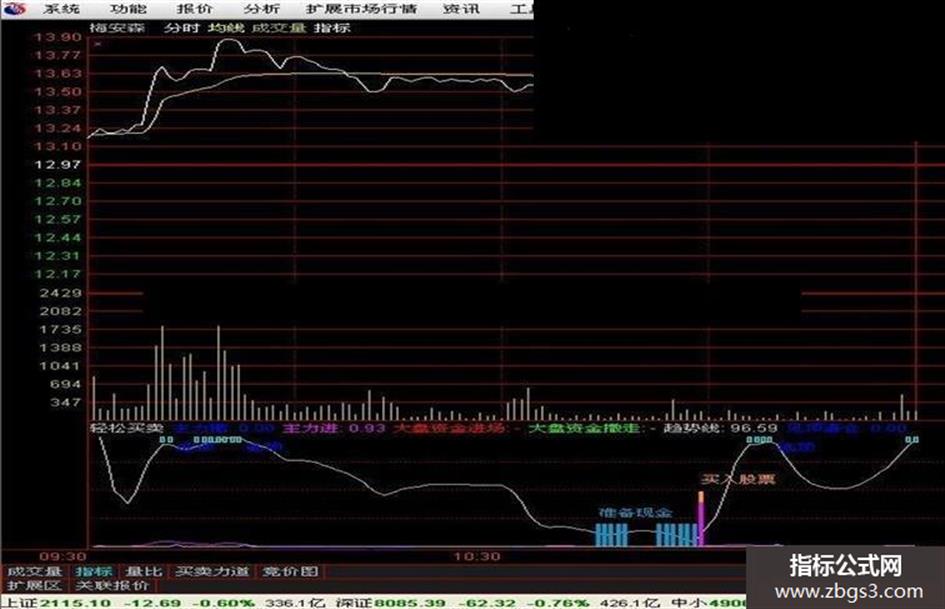 在股市多年,这是第一次发帖,望抛砖引玉石!在论坛看了诸多高手帖子指标,综合各位的指标源码和思路也发个高抛低吸指标“轻松买卖”;之前很多类似指标,要么成功率不高,要么有未来函数,觉得不很理想,利用轻松买卖指标在分时图上高抛低吸,成功率很高!使用说明:发出见顶清仓信号可以卖掉一部分仓位,等候发出买入股票信号后再买入刚才卖出信号,如此反复操作,可以大幅降低持仓成本,我们曾经用中国石油这只股票做过推演,如果2007年上市第一天最高价买入,照此高抛低吸操作,结果不一定是亏损的。