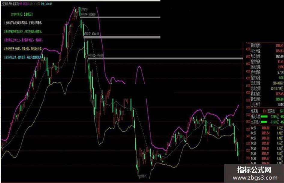 DRAWTEXT_FIX(1,0.01,0.08,0,'1. 上轨与下轨收拢时后市趋淡,扩张时后市看涨。')COLORWHITE;