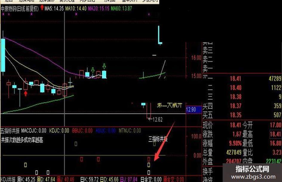 五指标共振:=MACDJC+KDJC+BBIJC+ASIJC+MTMJC=5;