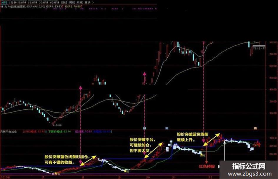 好象关于股价突破平台操作的指标不多,现分享一个之前收藏的突破平台加仓指标,无未来函数,准确率极高。