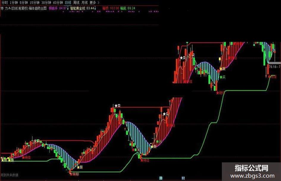 箱体趋势主图,显示箱顶及箱底,出现“绝佳”字样为买入,卖出一目了然,如图所示。