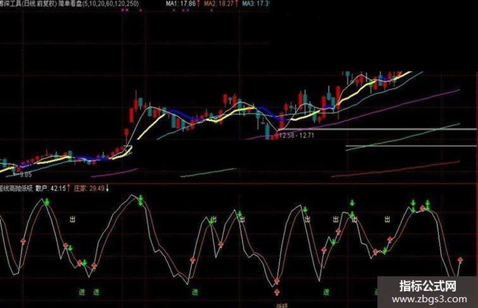 DRAWTEXT(CROSS(庄家,散户) AND 散户>85,70,'高抛'),COLORFFFF33;