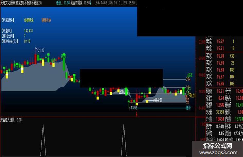净流入10日>REF(净流入10日,1) AND C/REF(C,1)<1.035 AND C<50;