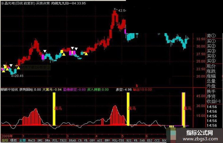 STICKLINE(CROSS(卖线,买线),OPEN,CLOSE,10,0),colormagenta;