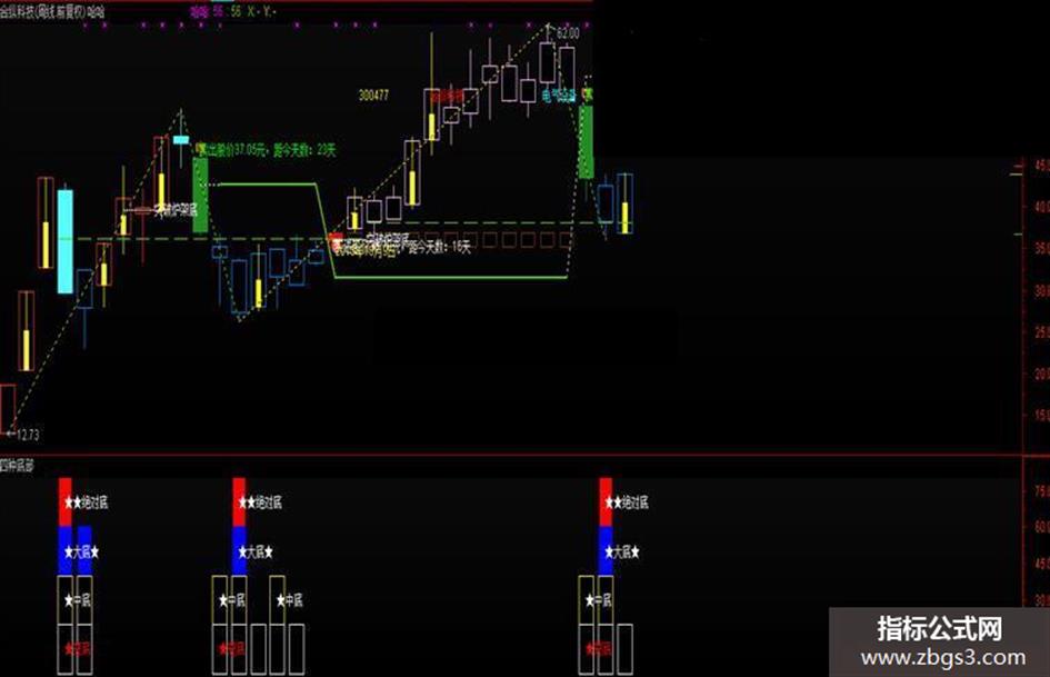 白色=小底,白色+黄色=中底,白色+黄色+蓝色=大底,白色+黄色+蓝色+红色=绝对底。