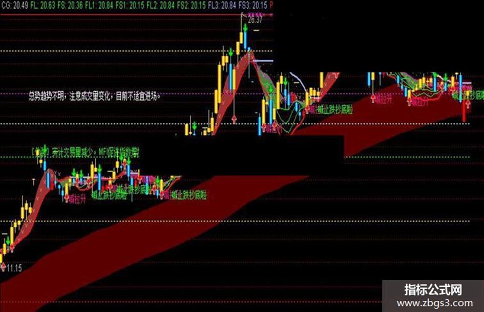 DRAWTEXT_FIX(MMM3,0.06,TS27,0,'[伪装]实计交易量减少。MFI促进指数增加。'),COLORGREEN;