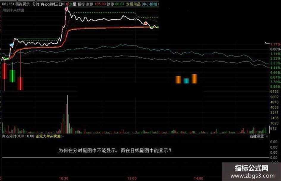 {分时DDX} 逐笔大单买卖差:(LARGETRDINNUM-LARGETRDOUTNUM); DDXM:=逐笔大单买卖差*SUM(VOL,0)/CAPITAL*100; DDX:=DDXM-REF(DDXM,1),COLORSTICK,LINETHICK2; DDX累积:=SUM(DDX,0);