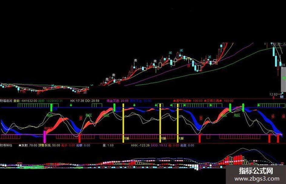 指标中,红色柱体就是买入信号,绿色柱体是卖出信号,黄色柱体是预警信号。并且该指标是三指标合一,MACD,KDJ和VOL三者相结合,对于每一个个股的分析都有不少的提高!