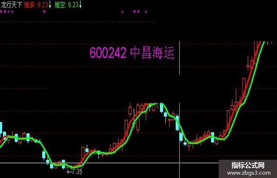 龙行天下用法: 红线从绿线上穿出来,简单说变双线就是介入机会,变单绿线无条件走人时刻! 但是操作个股选择的时机最好是趋势上升阶段,所以,即使是两条线分开,也要看个股强度。 如图:后续趋势分开时,此时股价已明显拉升过一段时间,下跌趋势形成,最好不参与;