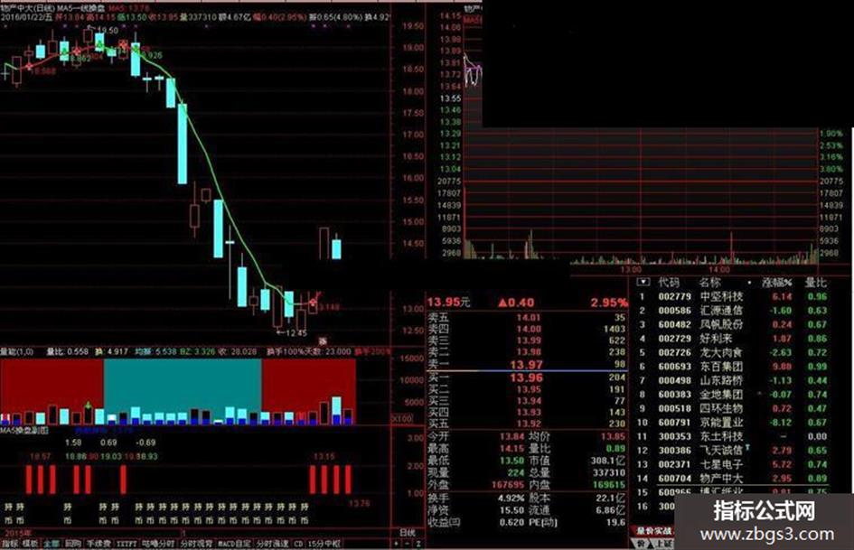 原理就是根MA5日均线,线上持股,线下持币。 面板是用于观察,主图,副图,分时主图都在面板中显示。 二个预警分别是出与入的预警,加上主,副,分一共5个指标在一起,不加密,可以自行修改。 说明都在图中