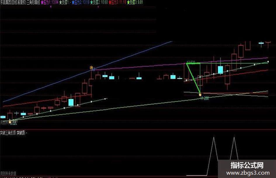 之前发过一个突破三角形顶大智慧选股指标,应粉丝要求今天再发一个通达信版的突破三角形顶,指标为源码,主图是支撑压力画线指标+三角形指标,副图/选股是突破三角形顶指标,可以结合主图的画线指标使用!附件包含主图和副图/选股指标。