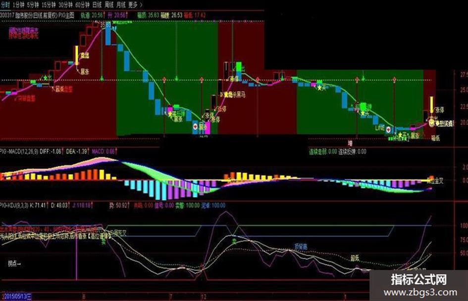 主图与KDJ副图含未来函数,不喜欢的慎重。MACD图不含未来 因为包含未来函数,提示有时有飘移,只做参考