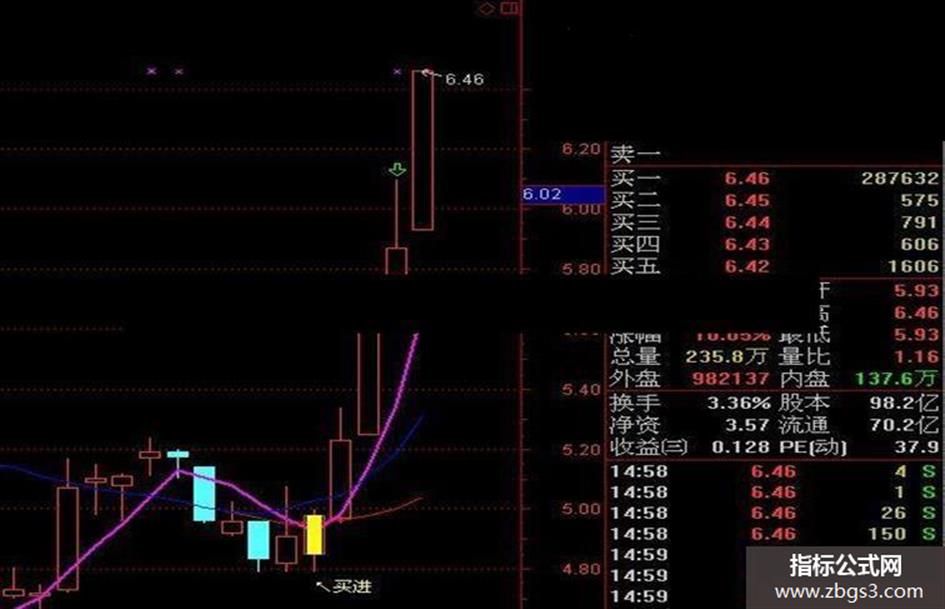 DRAWTEXT(FILTER(买=1,5),LOW-0.05,'↖买进'),COLORYELLOW;