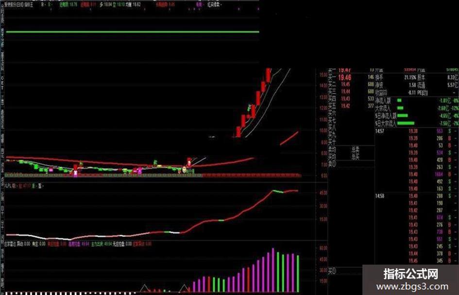 卖线1:=IF(MC1>MAX(MC2,MA4),MC1,IF(MC1<MIN(MC2,MA4),MC2,MA4)),COLORFF00CC,LINETHICK3;