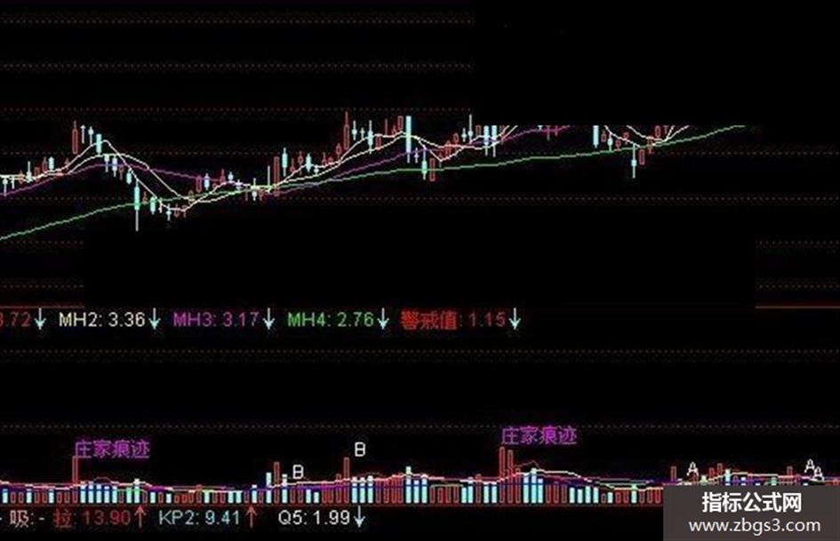 DRAWTEXT(AX1>3&&AX1<5&&AX2A>2&&AX2>2,1.2*HSL,'庄家痕迹'),COLORMAGENTA;