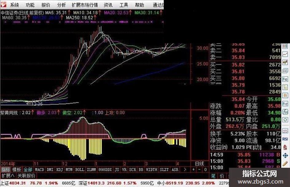 做多:IF(A1>=B1,A1,B1),LINETHICK2,COLORFF00FF;