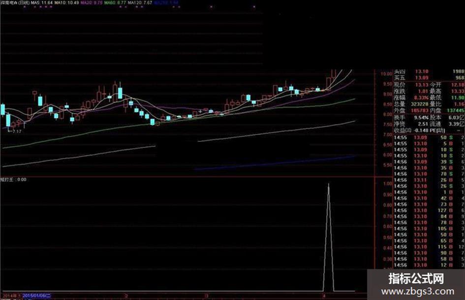 BV:=MA(OB,30);BV1:=MA(OB,13);BV2:=MA(OB,5);TT:=CLOSE>REF(CLOSE,1)*1.035;