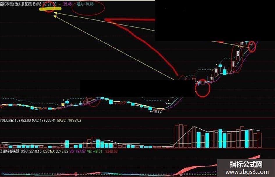 随贴附送配套主图《ema5》源码,黄色单线持币,双线持股待涨或做T,是否有能力突破阻力是持股的关键