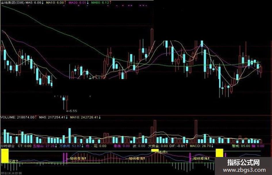 五指山:EMA((CLOSE-LLV(CLOSE,55))/(HHV(CLOSE,55)-LLV(LOW,55))*100,5),LINETHICK1,COLORFF00FF;