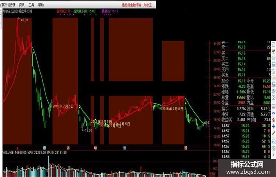 趋势线上升:IF(HS,趋势线,DRAWNULL),LINETHICK2,COLORRED;
