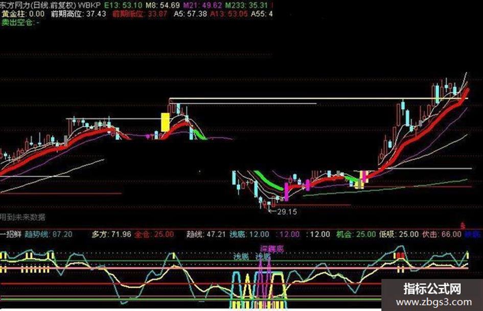 次下趋势:=MA(HIGH,20)*0.9,COLORWHITE;