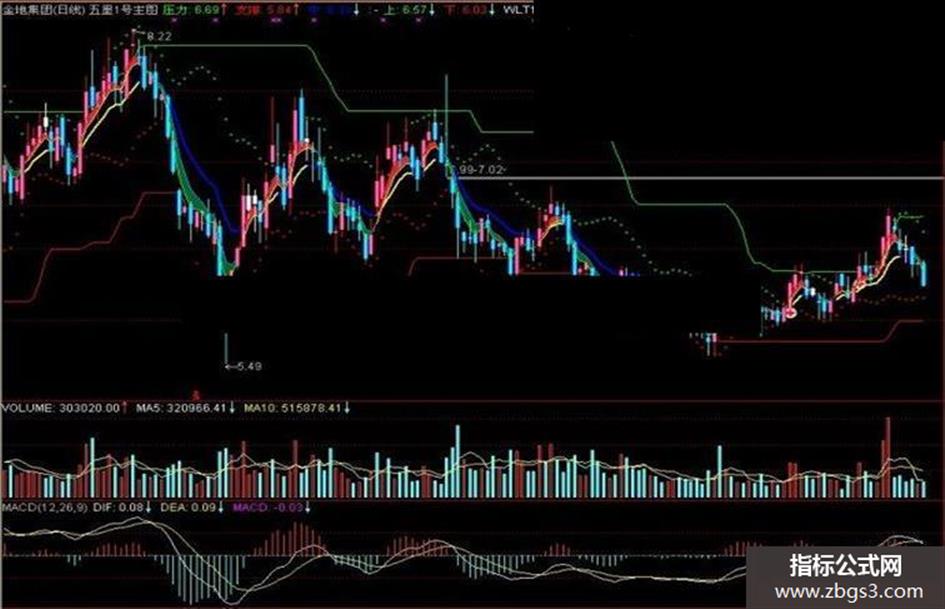 TJ82:=中>=REF(中,1) AND LAST( 中<=REF(中,1),5,1) AND CROSS(C,中) AND C<支撑*1.13;