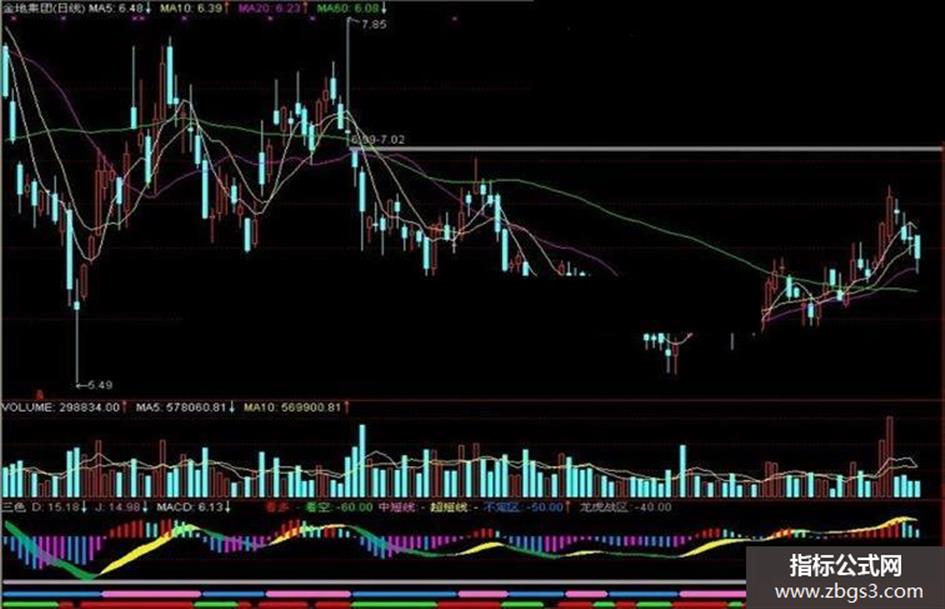 中短线:IF(J>D,-50,DRAWNULL),LINETHICK7,COLORCC66FF;
