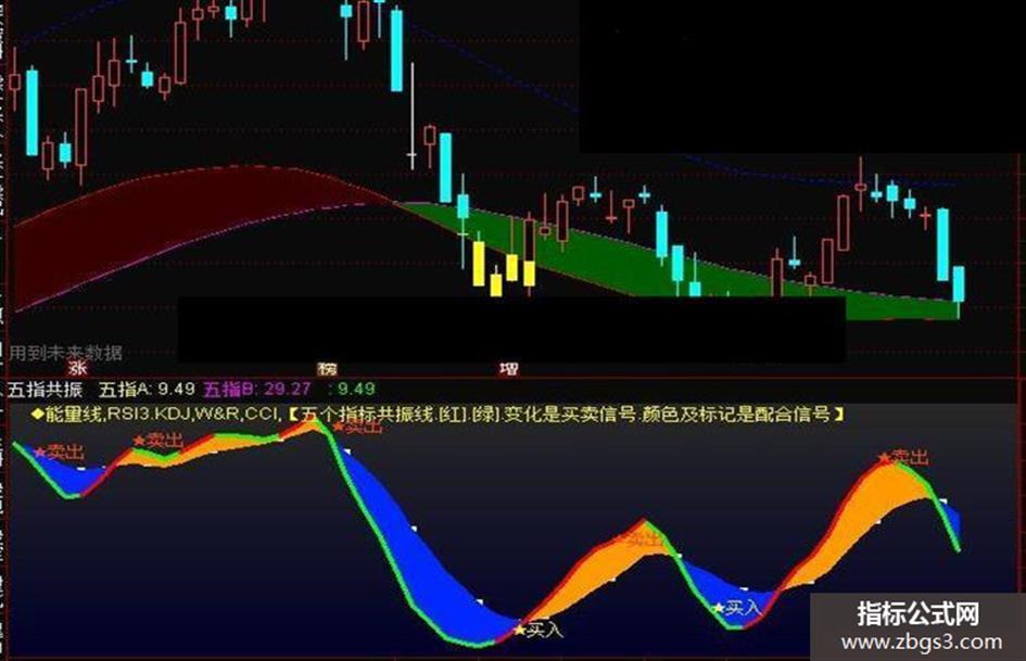 DRAWTEXT_FIX(1,0.02,0,0,'◆能量线,RSI3.KDJ,W&R,CCI,【五个指标共振线.[红].[绿].变化是买卖信号.颜色及标记是配合信号】'),COLOR00FFFF,LINETHICK3;
