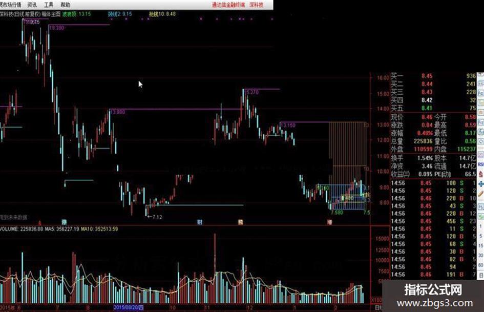 波浪底:=IF(T2,B,B),COLORGREEN{,POINTDOT},LINETHICK1;