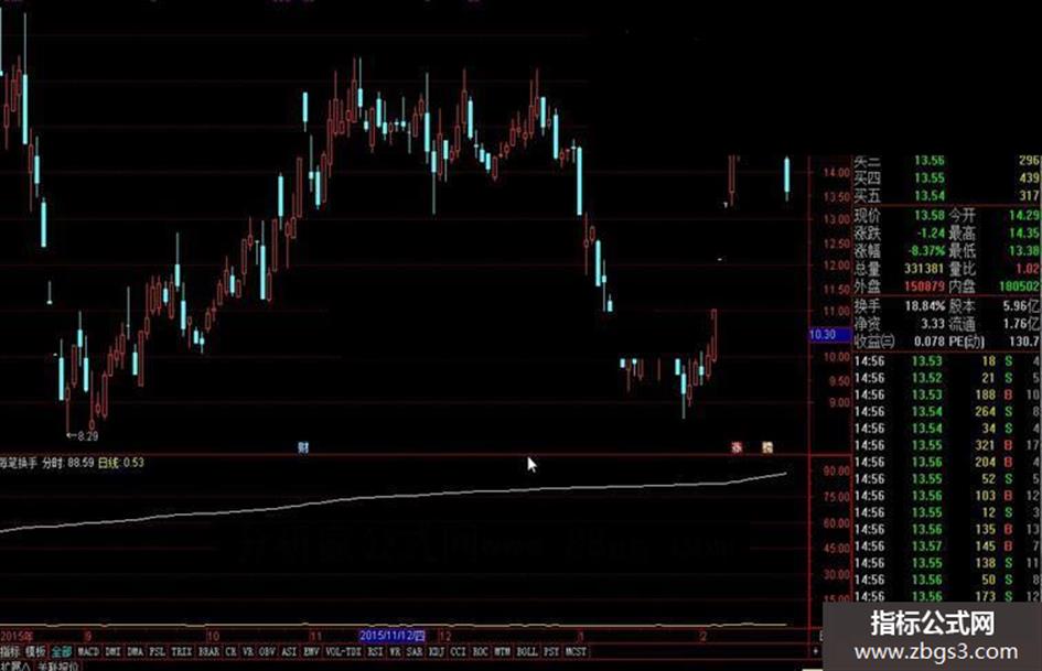 {分时:SUM(V,0)/CAPITAL*100/DYNAINFO(50);}{显示小数点后四位}